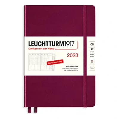 LEUCHTTURM1917 365774 Weekly Planner Medium (A5) 2023, 12 Months, Port Red, German