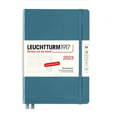 LEUCHTTURM1917 365777 Weekly Planner 2023, 12 Months, Stone Blue, Medium (A5)