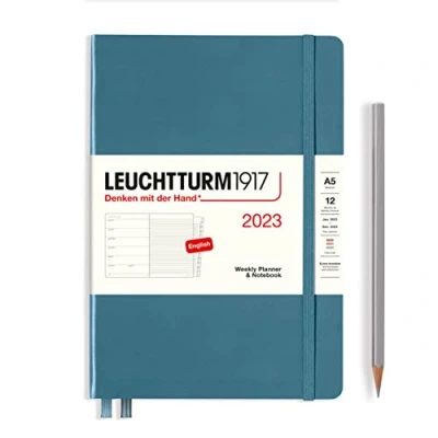 LEUCHTTURM1917 365887 Weekly Calendar & Notebook Medium (A5) 2023, 12 Months, Stone Blue, English