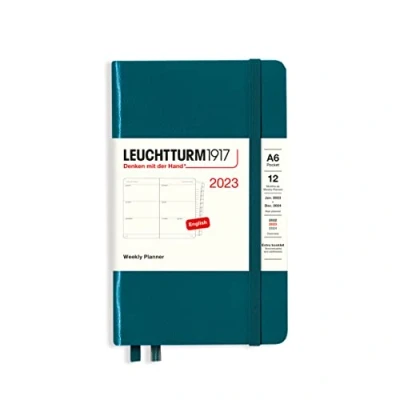 LEUCHTTURM1917 365955 Pocket A6 Weekly Planner 2023, 12 Months, Pacific Green, English