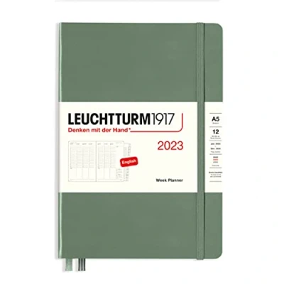 LEUCHTTURM1917 365989 Weekly Planner Medium (A5) 2023, 12 Months, Olive, English