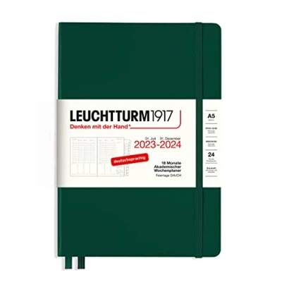 LEUCHTTURM1917 367546 Academic Weekly Planner Medium (A5) 2024, 18 Months, Forest Green, German
