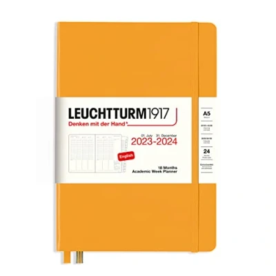 LEUCHTTURM1917 367555 Academic Weekly Planner Medium (A5) 2024, 18 Months, Rising Sun, English
