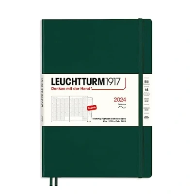 LEUCHTTURM1917 367561 Monthly Planner with Notebook Soft Cover Composition (B5) 2024, 16 Months, Forest Green, English