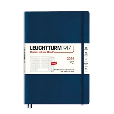 LEUCHTTURM1917 367565 Monthly Planner with Notebook Soft Cover Composition (B5) 2024, 16 Months, Navy, English
