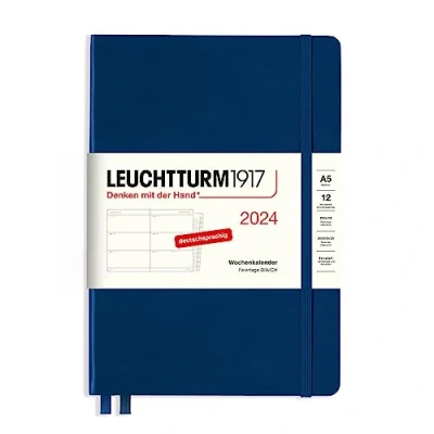 LEUCHTTURM1917 367611 Weekly Planner Medium (A5) 2024 with Extra Book for Addresses and Anniversaries, Navy, German, 12 Months