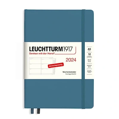 LEUCHTTURM1917 367619 Weekly Planner Medium (A5) 2024, with Booklet, Stone Blue, German