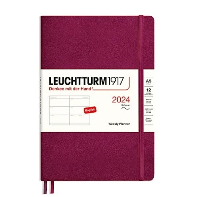 LEUCHTTURM1917 367658 Weekly Diary Softcover Medium (A5) 2024 12 Months Port Red English
