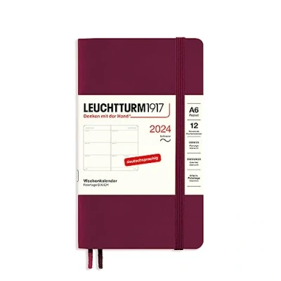 LEUCHTTURM1917 367673 Weekly Planner Pocket (A6) 2024, Soft Cover, Port Red, German, 12 Months