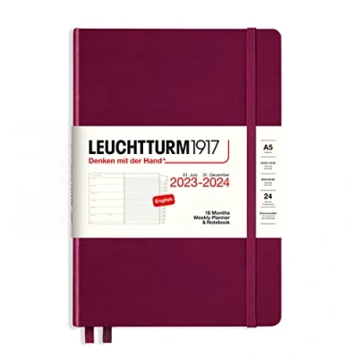 LEUCHTTURM1917 367686 Weekly Planner & Notebook Medium (A5) 2024, 18 months, Port Red, English
