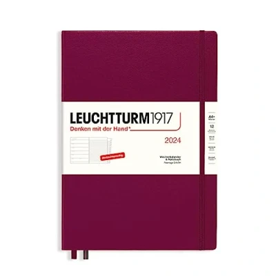 LEUCHTTURM1917 367691 Weekly Calendar & Notebook Master (A4+) 2024, with Extra Book for Addresses and Anniversaries, Port Red, German, 12 Months