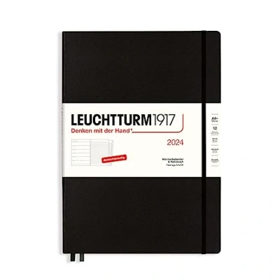 LEUCHTTURM1917 367693 Weekly Calendar & Notebook Master (A4+) 2024, with Extra Book for Addresses and Anniversaries, Black, German, 12 Months