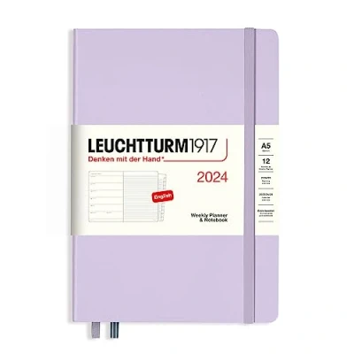 LEUCHTTURM1917 367703 Weekly Planner & Notebook Medium (A5) 2024, with booklet, Lilac, English