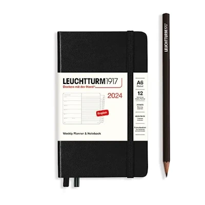 LEUCHTTURM1917 367747 Weekly Planner & Notebook Pocket (A6) 2024, with booklet, Black, English
