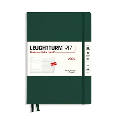LEUCHTTURM1917 367750 Weekly Planner & Notebook Composition (B5) 2024, with booklet, Forest Green, English