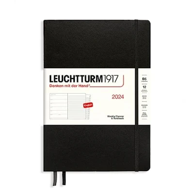 LEUCHTTURM1917 367764 Weekly Planner & Notebook Composition (B5) 2024, with booklet, Black, English