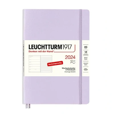LEUCHTTURM1917 367771 Weekly Calendar & Notebook Medium (A5) 2024, Soft Cover, Lilac, German, 12 Months