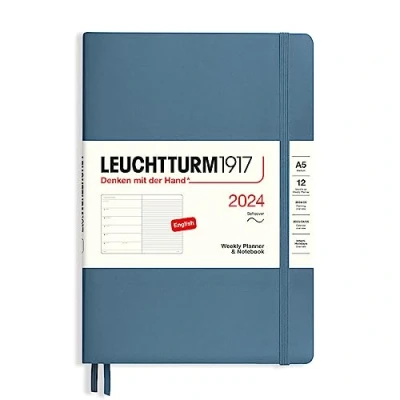 LEUCHTTURM1917 367786 Weekly Planner & Notebook Medium (A5) 2024, Softcover, Stone Blue, English