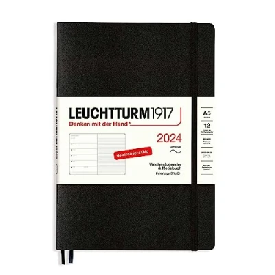 LEUCHTTURM1917 367787 Weekly Planner & Notebook Medium (A5) 2024, Softcover, Black, German