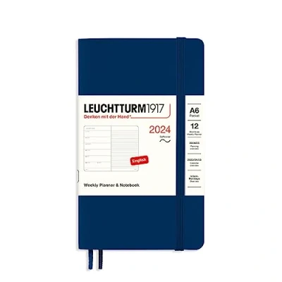 LEUCHTTURM1917 367794 Weekly Planner & Notebook Pocket (A6) 2024, Softcover, Navy, English