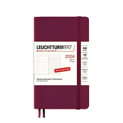 LEUCHTTURM1917 367795 Weekly Planner & Notebook Pocket (A6) 2024, Softcover, Port Red, German