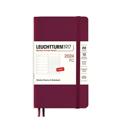 LEUCHTTURM1917 367796 Weekly Planner & Notebook Pocket (A6) 2024, Softcover, Port Red, English