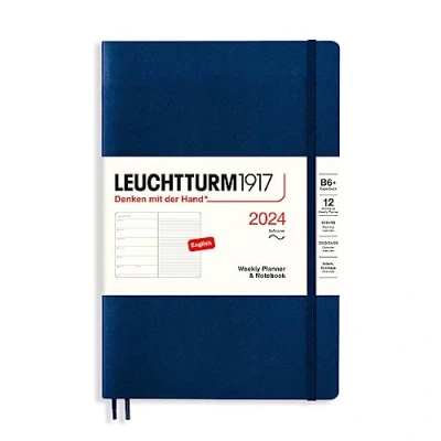 LEUCHTTURM1917 367810 Weekly Calendar & Notebook Softcover Paperback (B6+) 2024, 12 Months, Navy, English