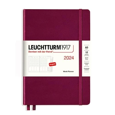 LEUCHTTURM1917 367833 Weekly Planner Medium (A5) 2024, 12 Months, Port Red, English