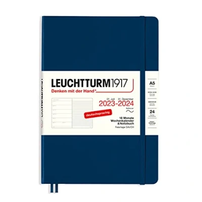 LEUCHTTURM1917 367859 Weekly Calendar & Notebook Softcover Medium (A5) 2024, 18 Months, Navy, German