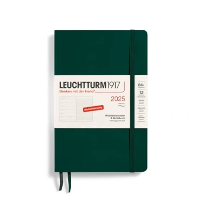 LEUCHTTURM1917 370524 Weekly Calendar & Notebook 2025, Paperback B6+ Softcover 12 Month Planner, 80 g, Lined Forest Green