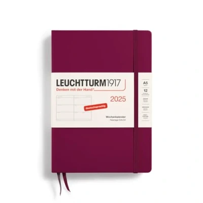 LEUCHTTURM1917 370543 Weekly Planner Medium (A5) 2025, Port Red, German