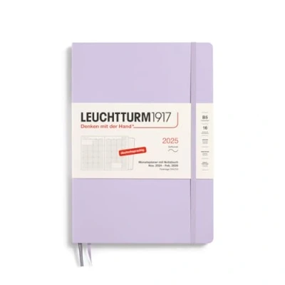 LEUCHTTURM1917 370602 Monthly Planner & Notebook 2025, Composition B5 Softcover 16 Months, 80 g, Lined Lilac