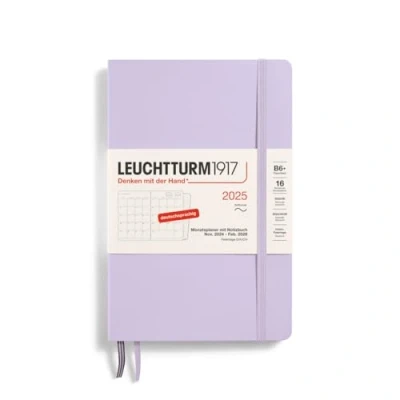 LEUCHTTURM1917 370608 Monthly Planner & Notebook Paperback (B6+) 2025, 16 Months, Soft Cover, Lilac, German