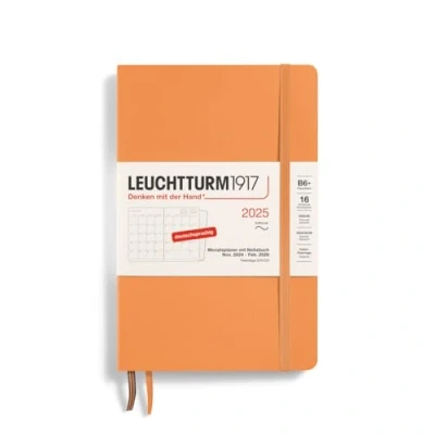 LEUCHTTURM1917 370610 Monthly Planner & Notebook 2025, Paperback B6+ Softcover 16 Months, 80 g, Lined Apricot