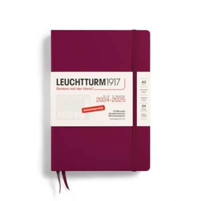 LEUCHTTURM1917 370634 Academic Weekly Planner 2025, Medium A5 Hardcover 18 Month Calendar, 80 g, Ruled Port Red