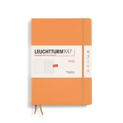 LEUCHTTURM1917 370641 Weekly Calendar & Notebook 2025, Composition B5 Hardcover 12 Month Planner, Lined Apricot, English