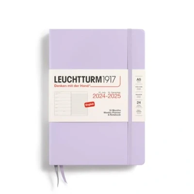 LEUCHTTURM1917 370713 Weekly Calendar & Notebook 2025, Medium A5 Hardcover 18 Month Planner, Lined Lilac, English