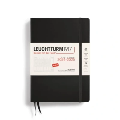 LEUCHTTURM1917 370724 Academic Week Planner Medium (A5) 2025, 18 months (07.2024 12.2025), Hardcover, Black, English