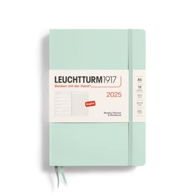 LEUCHTTURM1917 370741 Weekly Planner & Notebook Medium (A5) 2025, Mint Green, English