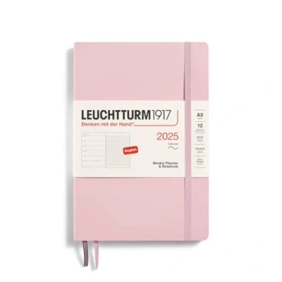 LEUCHTTURM1917 370747 Weekly Calendar & Notebook 2025, Medium A5 Softcover 12 Month Planner, Lined Powder, English