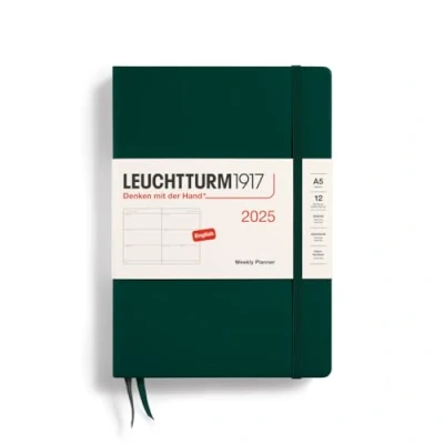 LEUCHTTURM1917 370773 Weekly Planner Medium (A5) 2025, Forest Green, English