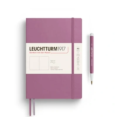 LEUCHTTURM1917 372200 Notebook Medium (A5), Softcover, 123 Numbered Pages, Dusty Rose, Plain