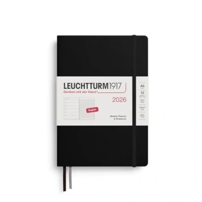 LEUCHTTURM1917 372650 Weekly Planner & Notebook Medium (A5) 2026 Hardcover, 12 Months, Black, English