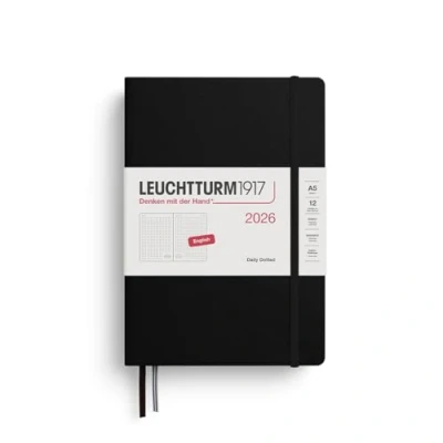 LEUCHTTURM1917 372780 Daily Planner Dotted Medium (A5) 2026, 12 Months, Black, English