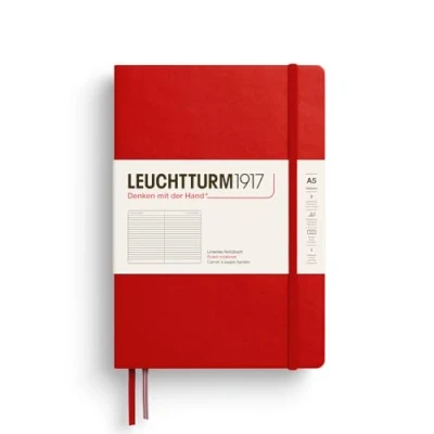 LEUCHTTURM1917 373978 Notebook Medium (A5), Hardcover, 251 Numbered Pages, Cherry, Ruled