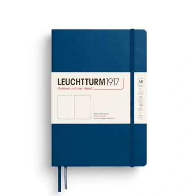 LEUCHTTURM1917 373989 Notebook Medium (A5), Hardcover, 251 Numbered Pages, Indigo, Plain