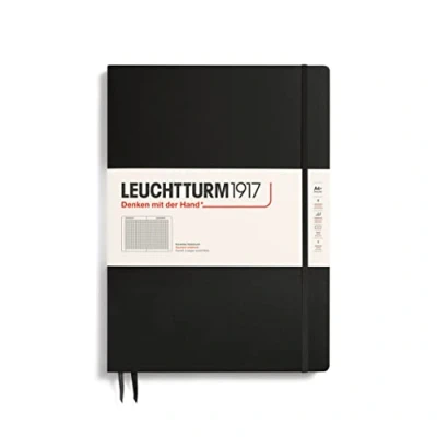MASTER SLIM (A4+) squared black 121 numbered pages Hard cover page marker elastic band fastener