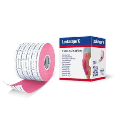 Leukotape K Kinesiology Tape Water Repellent, Skin Friendly, Stays in Place for up to 9 Days 5cm x 5m, Pink, 1 Roll