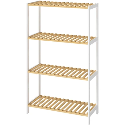 Description Upgrade your home storage with the Levede 4-Tier Bamboo Storage Shelf, a blend of natural style and functional design. Crafted from eco-friendly bamboo slats and a waterproof white steel frame, it’s built to thrive in damp environments like kitchens, bathrooms, or laundry rooms. The open bamboo slat design ensures excellent drainage and ventilation, keeping your items dry and free from mold, while each shelf supports up to 10kg for reliable storage of toiletries, kitchen supplies, or plants. Built-in anti-tip hardware and reinforced screws provide stability and safety, and the minimalist, two-tone design complements any modern decor. With all necessary hardware and a clear instruction manual included, assembly is quick and straightforward. Whether you’re organizing your pantry, bathroom, or balcony, this shelf combines durability, breathability, and safety to meet all your storage needs. Key Features Natural bamboo slats + waterproof steel frame for durability Open slat