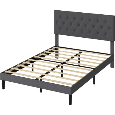 Description Levede Upholstered Bed Frame delivers a modern, elegant and supportive sleep solution for UK homes. Designed with a sturdy MDF and plywood structure, high-density 18D foam and soft linen fabric, this bed frame brings comfort, durability and contemporary style to any bedroom. The tufted headboard offers excellent back support for reading or relaxing, while the raised legs provide easy access for robot vacuums. Our double bed frame is perfect for modern apartments, guest rooms and master bedrooms. Key Features Elegant Button-Tufted Headboard: Soft linen upholstery with a padded, stylish headboard offering comfortable back support and a refined look. Durable Wooden Structure: Built with MDF, plywood and reinforced slats for stable, noise-free sleep and long-lasting performance. High-Density 18D Foam: Provides soft cushioning along the headboard, enhancing comfort and premium feel. Breathable Linen Fabric: UK-favourite linen material—comfortable, textured, moisture-friendly